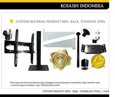 PT Kosasih Indonesia menawarkan solusi custom material besi, baja, dan stainless steel yang dapat disesuaikan dengan kebutuhan Anda. Kami tidak hanya menyediakan material berkualitas tinggi, tetapi juga memungkinkan Anda untuk menambahkan logo atau merek sendiri pada produk. Dengan harga yang terjangkau, kami memastikan setiap produk dibuat dengan presisi dan memenuhi standar kualitas terbaik. Layanan pembuatan dies/cetakan juga tersedia untuk memastikan hasil yang sesuai dengan ekspektasi Anda. Percayakan kebutuhan material custom Anda pada kami, dan dapatkan produk yang tidak hanya fungsional, tetapi juga memperkuat identitas merek Anda.