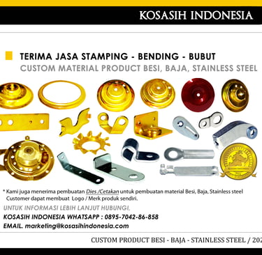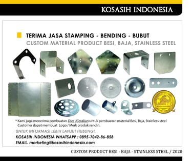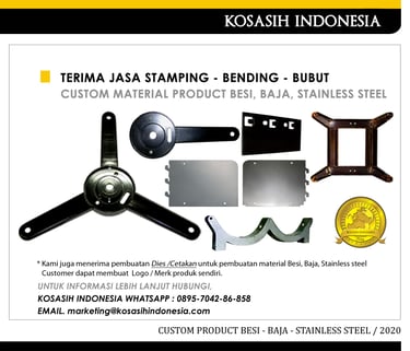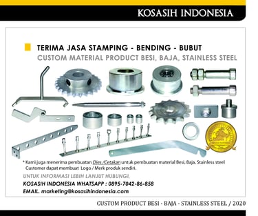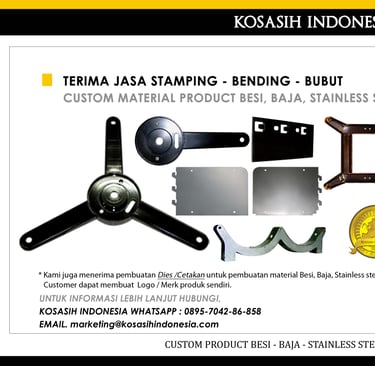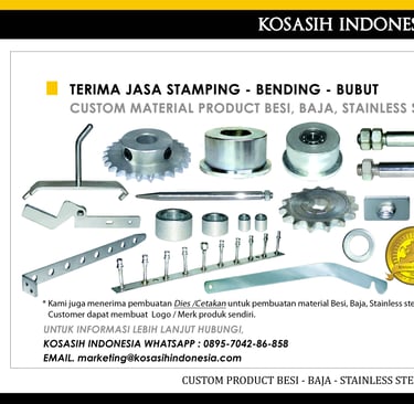 PT Kosasih Indonesia menawarkan layanan Custom Material dengan presisi tinggi untuk berbagai kebutuhan industri. Kami menyediakan jasa lengkap mulai dari Stamping, Cutting, Bending, Bubut, hingga Pengelasan, semuanya dirancang untuk memenuhi spesifikasi dan standar kualitas terbaik. Dengan menggunakan material berkualitas seperti besi, baja, dan stainless steel, kami memastikan setiap produk yang dihasilkan kuat, tahan lama, dan sesuai dengan kebutuhan pelanggan. Tim ahli kami siap membantu Anda dari desain hingga produksi, memberikan solusi terbaik dengan harga kompetitif. Percayakan kebutuhan metalworking Anda pada kami, dan dapatkan hasil yang presisi dan memuaskan!